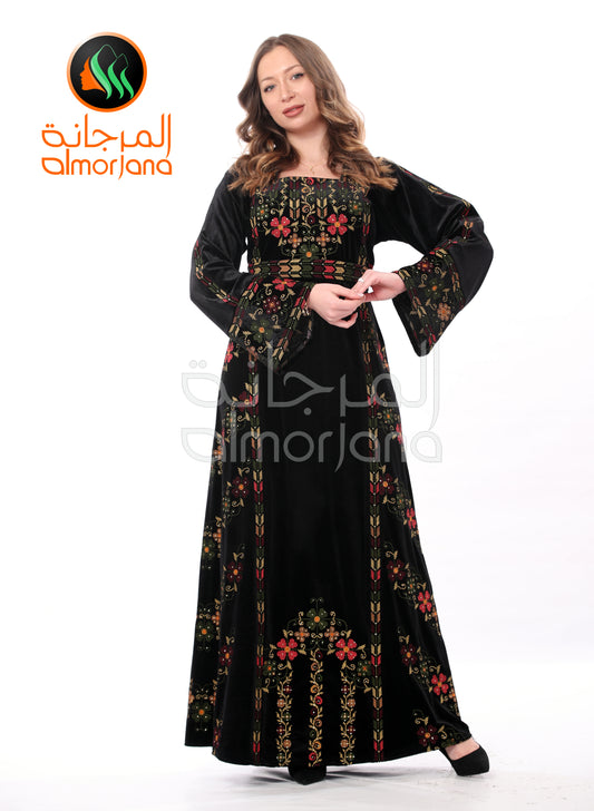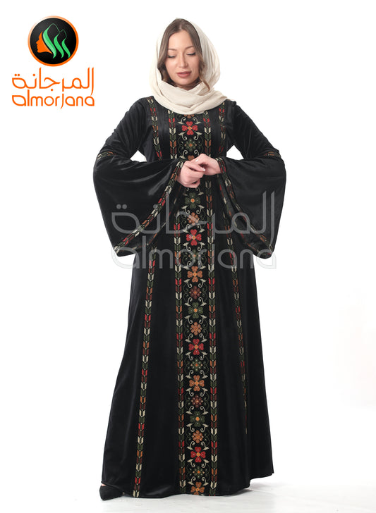 Black VelvetFlowers Palestinian Embroidered Dress Thobe